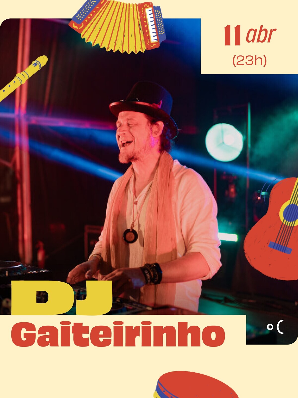 Continuamos noite fora acompanhados pelo músico conhecido por trazer ao palco sonoridades que convidam a viajar pelos Balcãs, África, Oriente e América. Música para dançar e celebrar, onde se cruzam influências folk, world e eletrónica.