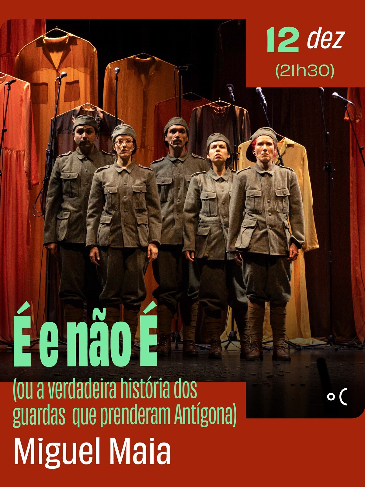 Nesta comédia teatral sobre o ato de pensar e tomar decisões, inventa-se um novo destino para os guardas de Creonte a partir dos textos de Hannah Arendt e Fernando Savater e da Antígona de Jean Anouilh, para debater o dilema e a complexidade da escolha. Em palco estão cinco intérpretes e um sistema de som – e tudo acontece à frente dos nossos olhos.