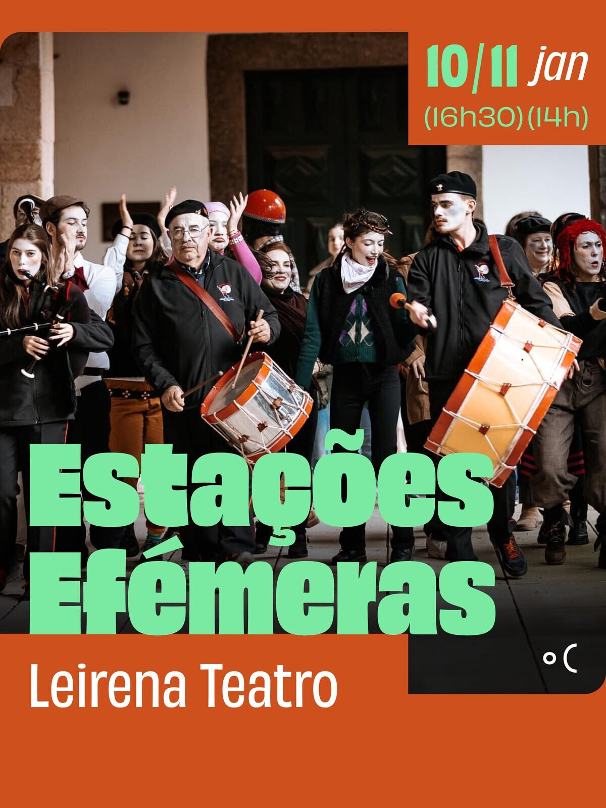 Pela primeira vez, um espetáculo participativo produzido pelo Ponto C vai ser remontado (numa versão reduzida) e conhece novos públicos. Quem não assistiu a Estações Efémeras Penafiel, produzido pelo Leirena Teatro com a comunidade e com o Grupo de Bombos Zés Pereiras de Galegos, tem agora oportunidade de revisitar esta peça original, por ocasião do Auto dos Reis Magos em Figueira.