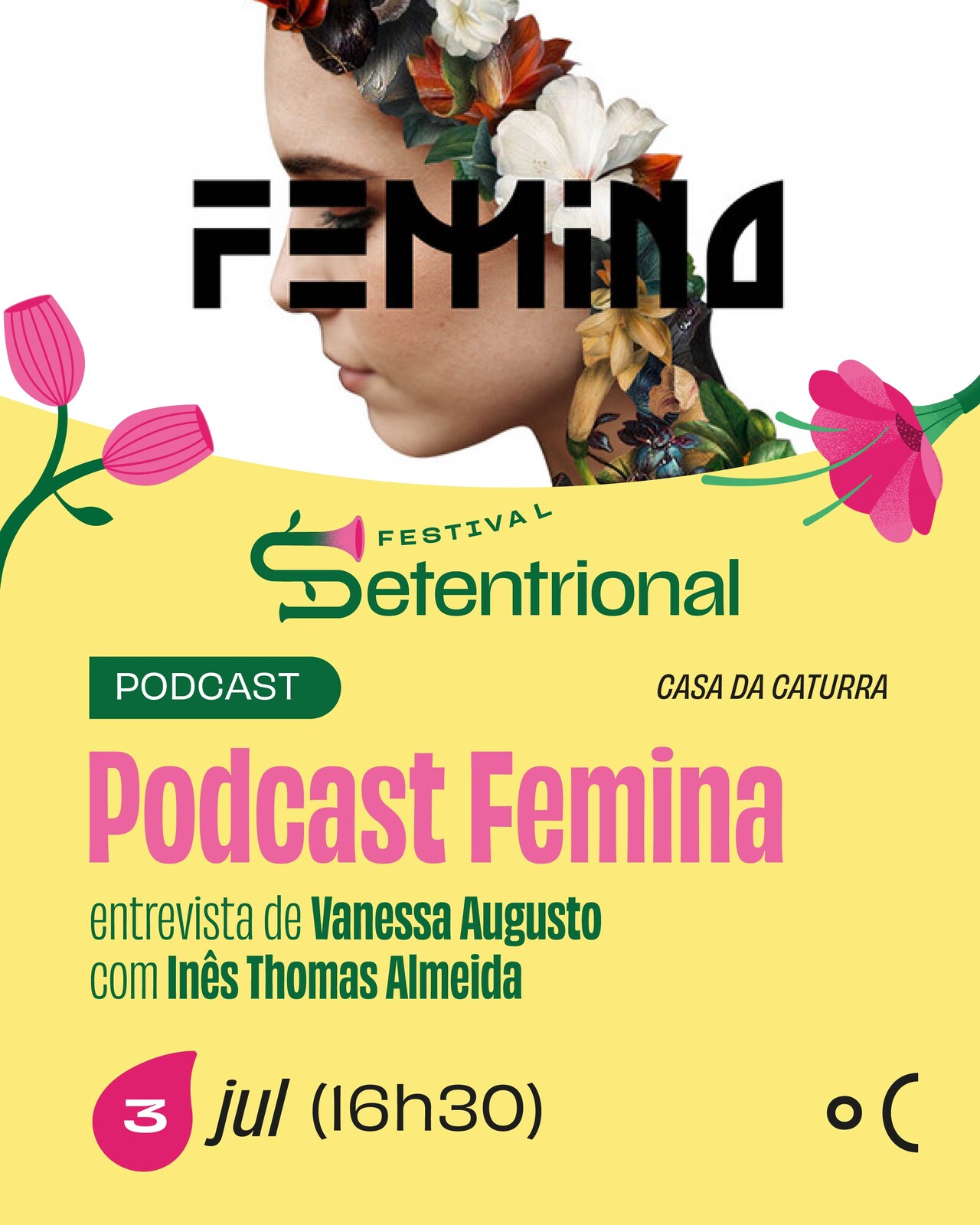 O podcast da jornalista Vanessa Augusto – todas as temporadas em https://www.femina.pt/ – dá voz às mulheres que moldam a cultura dos nossos dias. Em cada episódio, uma artista é convidada a partilhar o seu percurso e história pessoal. A gravação deste episódio, com a musicóloga Inês Thomas Almeida, pode ser assistida ao vivo.