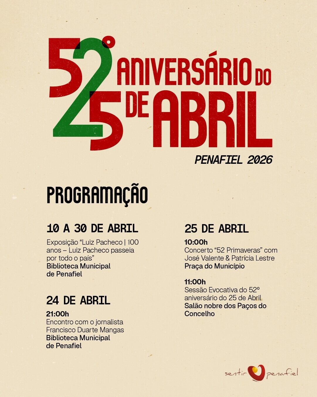 Com este programa, o Município de Penafiel reforça o compromisso de preservar a memória coletiva e de promover os valores de Abril junto das novas gerações.